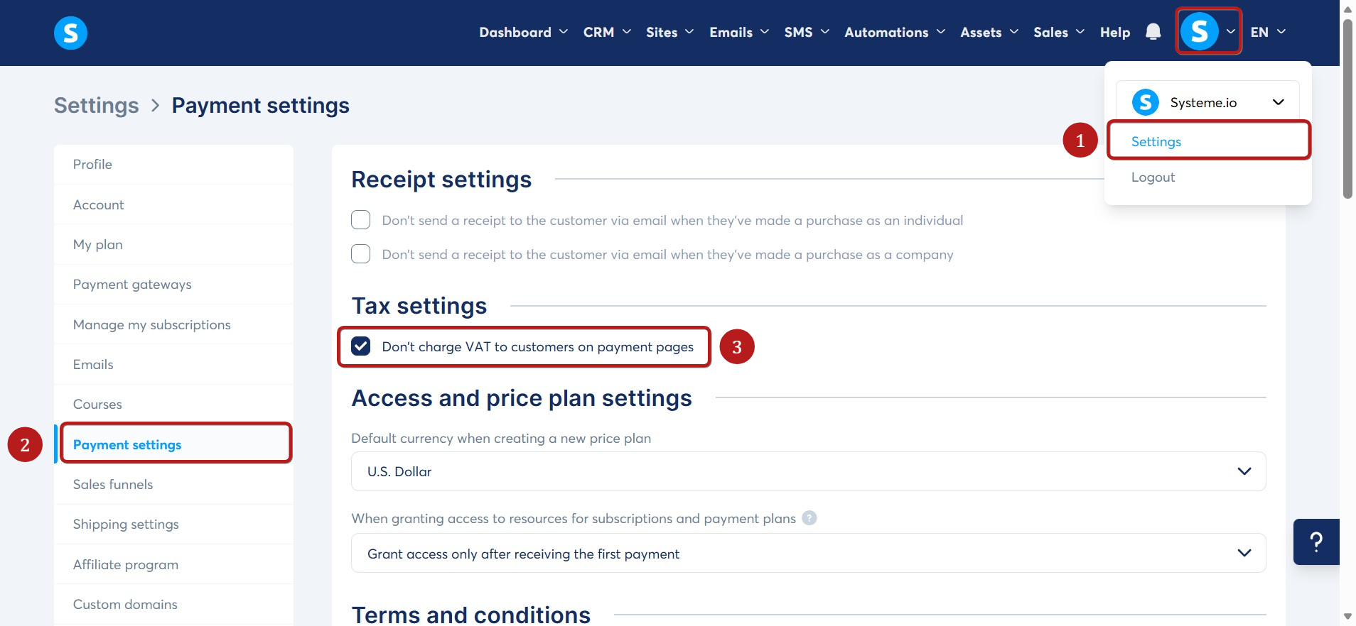 ทำเครื่องหมายที่ตัวเลือก ไม่เรียกเก็บ VAT จากลูกค้าในหน้าชำระเงิน (3)